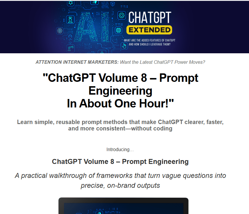 - Most sellers hand you “prompt packs” that go out of date in weeks. This training teaches frameworks that work no matter how ChatGPT evolves.